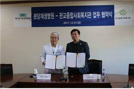 판교종합사회복지관은 지난 12월01일 지역사회 소외계층을 위한 협력적 사례관리를 진행하고자 분당제생병원(병원장 채병국)과 업무협약을 체결했다.