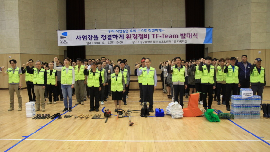 성남도시개발공사(사장 황호양)가 청결한 지역사회 환경조성과 공기업으로서의 사회적 책무 이행을 위해 환경정비 TF팀을 구성, 10일 발족했다.