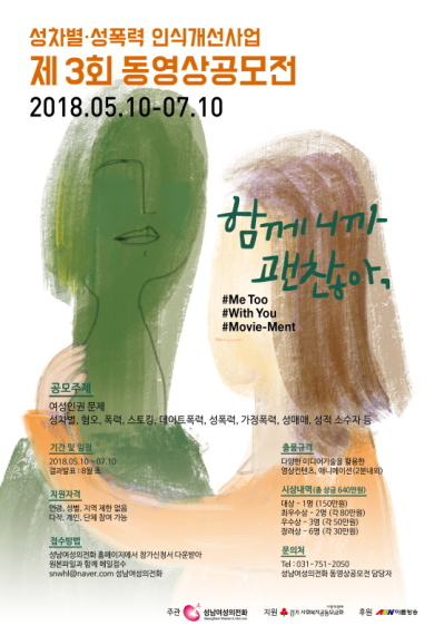 성남여성의전화(회장 황선희)는 우리 사회에 만연한 성차별과 성폭력에 대한 인식변화를 이끌어 내고자 '제3회 동영상공모전'을 실시 한다.
