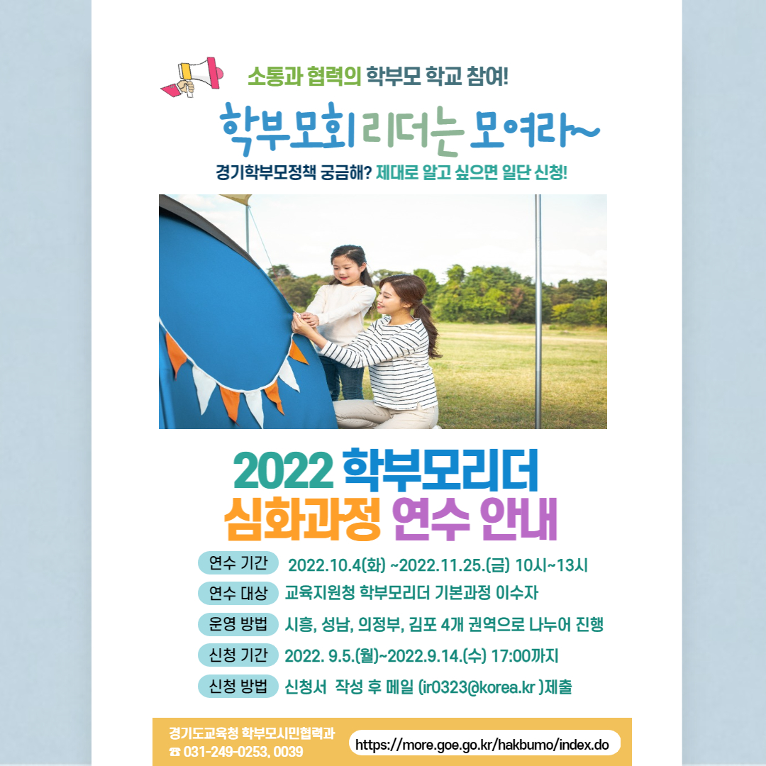 경기도교육청, 9월 14일까지 학부모리더 심화과정 연수 참가자 모집 > 정치/경제