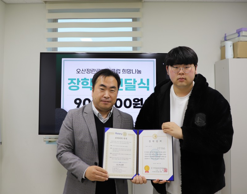 오산장애인종합복지관(관장 성도규)은 지난 15일 오산정란로타리클럽(회장 이은주)으로부터 경제적 어려움을 겪는 장애가정 학생 지원을 위한 장학금 90만 원을 기탁받고 전달식을 개최했다고 밝혔다.