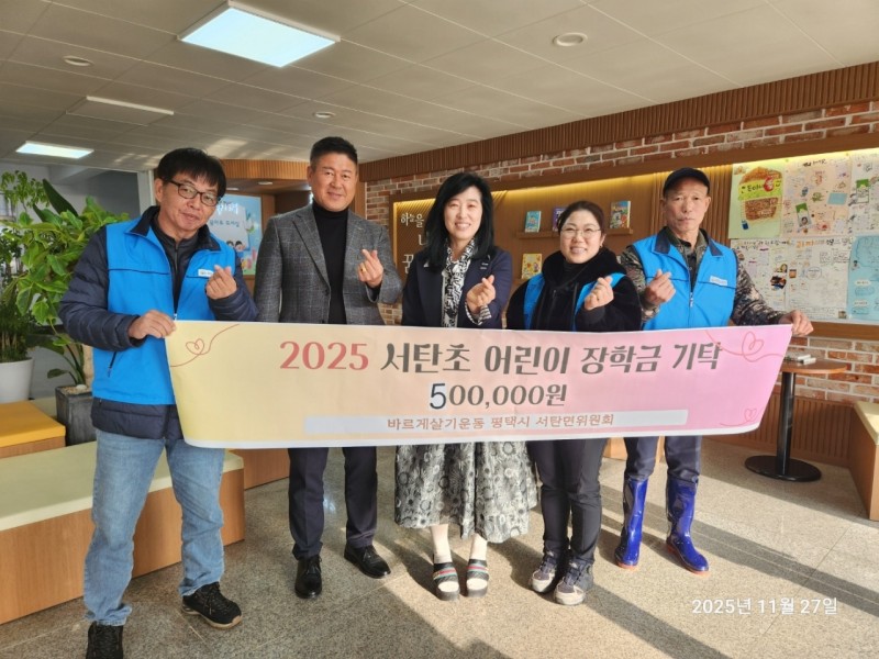 전달식에서 최미향 서탄초등학교 교장은 “이번 장학금은 경제적 도움을 넘어 지역사회가 함께하고 있다는 마음을 전해주는 뜻깊은 지원”이라며 “뜻을 모아주신 바르게살기위원회에 진심으로 감사드린다”고 전했다.