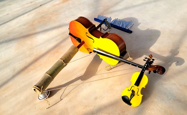 변남석, 클래식의 2중주, 나무 아크릴,135x25x150, Coloring by 이은주 [수호갤러리 제공]
