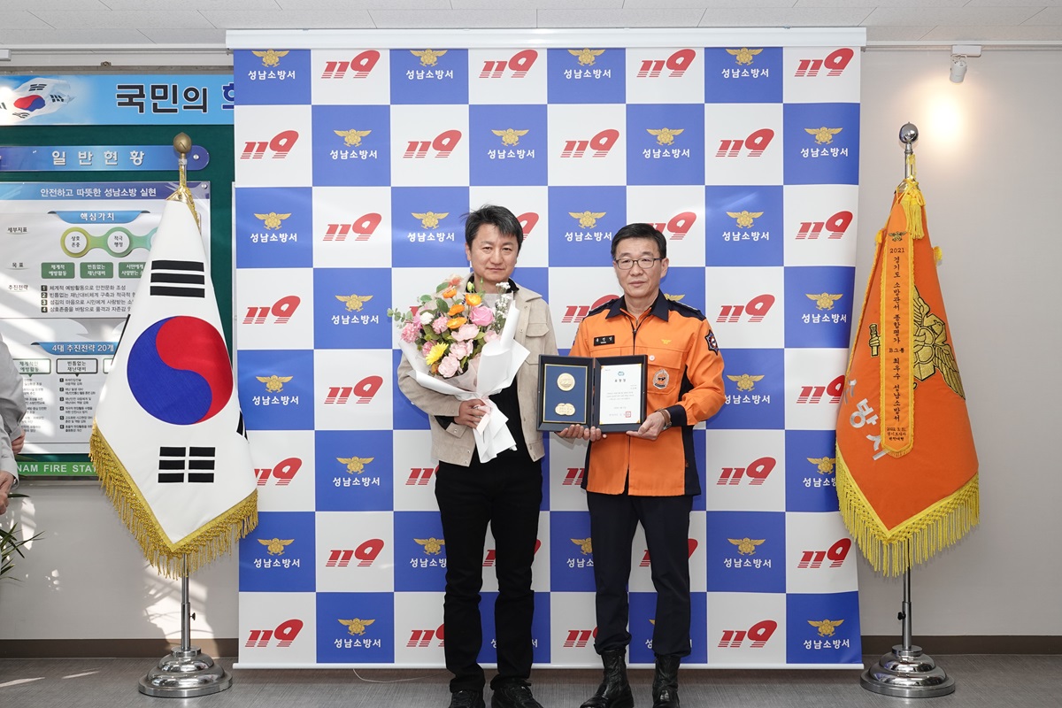 성남소방서(서장 홍진영)는 10일 오전 10시 청사 2층 서장실에서 심폐소생술로 시민의 생명을 구한 경찰관에게 하트세이버 (경기도지사 훈격) 인증서와 배지를 수여했다고 밝혔다.