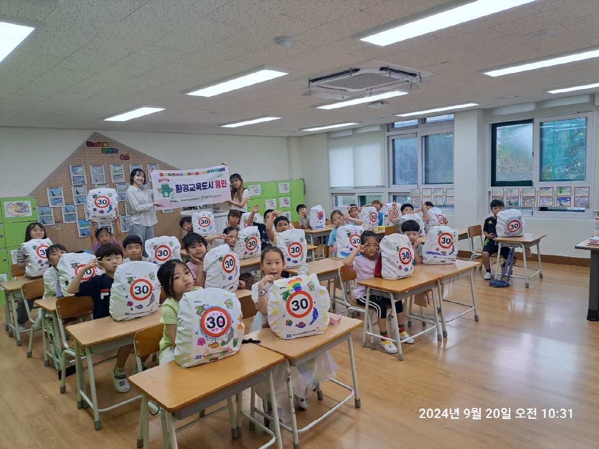 이번에 전달된 교통안전가방덮개는 운전자들에게 경각심을 주고 어린이들이 교통안전에 대한 인식을 높이기 위해 디자인되었다. 덮개에는 어린이보호구역 제한속도 '30'이 표시되어 있으며, 거북이, 상괭이, 물고기, 나무 등의 그림이 그려져 있어 환경 보호 메시지도 담고 있다. 단국대학교 환경교육단은 1학년 학생들에게 교통안전 및 환경교육을 실시하고, 가방 덮개를 꾸미고 착용하는 방법을 안내했다.
