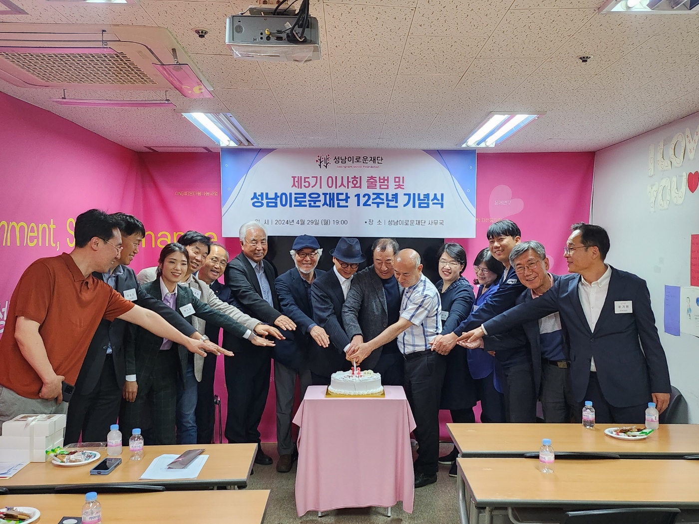 성남이로운재단(이사장 최병주)은 4월29일(월) 저녁 재단사무실에서 ‘창립 12주년 기념 및 제5기 이사회 출범식’을 개최했다.