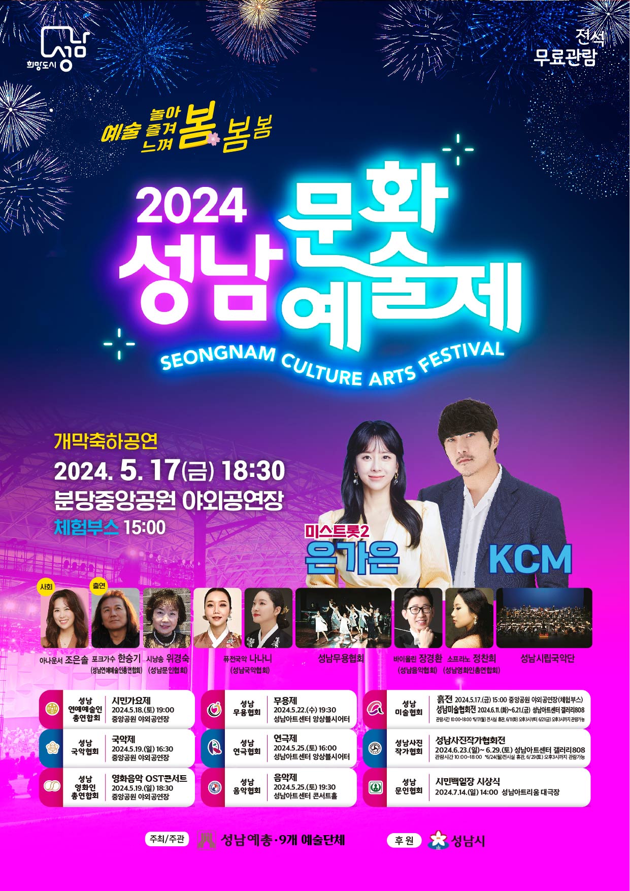 성남예총 및 9개 예술단체 행사 프로그램은 성남예총 홈페이지 https://www.cas.or.kr/ 에서 확인할 수 있다.