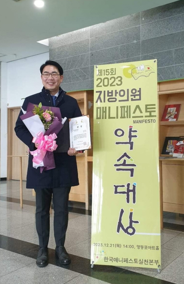 경기도의회 교육행정위원회 문승호 의원(더불어민주당, 성남1)이 12월 21일 영등포아트홀에서 한국매니페스토실천본부가 개최한 '제15회 2023 지방의원 매니페스토 약속대상' 시상식에서 좋은조례분야 부문 최우수상을 수상했다.