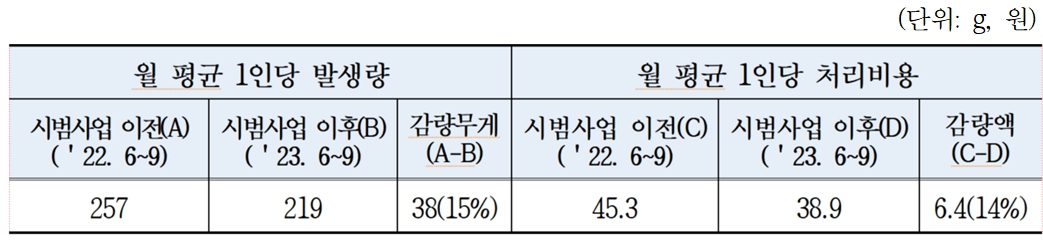 조례로 잔반 처리비용 절감 및 환경 보호, 사회복지 등 경제적 효과와 사회적 효과 모두 성과를 내며 좋은 평가를 받고 있다.
