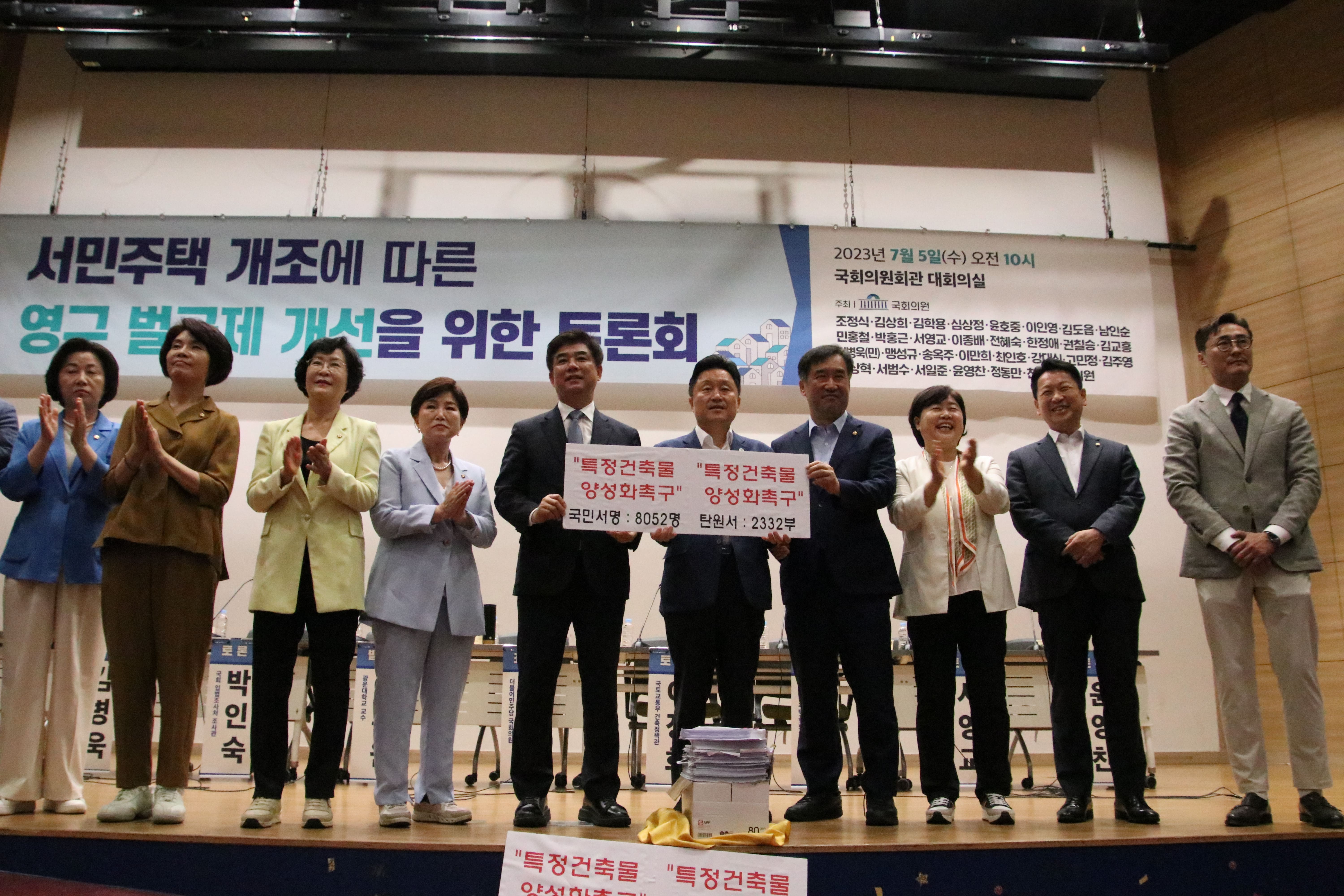 이번 토론회는 김병욱 의원과 함께 여야 31명 국회의원이 한데 모여 7월 5일(수) 오전10시, 국회 대회의실에서 진행되었는데, 2019년 건축법 개정 이후 서민주택 개조에 대한 이행강제금이 제한 없이 계속 부과되고 있어 피해자들이 속출하는 가운데, 이를 해결하기 위한 ‘특정건축물 정리를 위한 특별조치법’의 국회 통과를 위해 준비하였다.