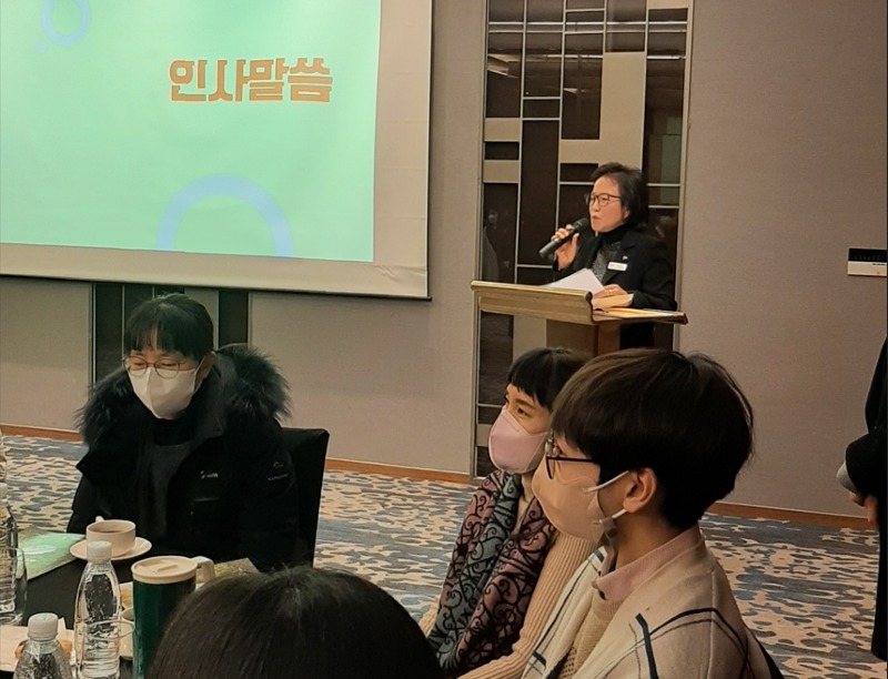 <행사에서 인사말하는 성남시자원봉사센터 장현자 센터장>