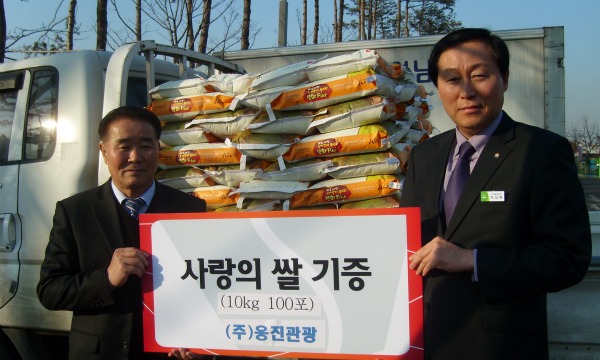 국내외 전세버스운송사업체인 ㈜웅진관광은 지난 2009년도부터 4년 년째 설과 추석 명절 때마다 직원들의 성의를 모아 불우이웃을 돕기 위한 사랑의 쌀을 성남시에 기탁해오고 있다.