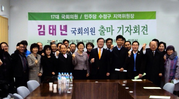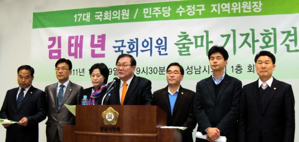 성남수정에서 17대 국회의원을 지낸 김태년 민주당(민주통합당) 수정구 지역위원장이 19일 내년 총선 출마를 공식 선언했다.