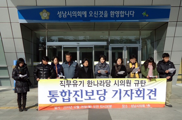 특히 "새해 예산안 처리를 앞둔 중차대한 시기에 한나라당 이 모 의원의 돌출성 정치공세로 민생복지 예산 처리시기를 놓치고 당리당략과 정치 공세로 날을 지새우는 성남시의회에 절망할 수 밖에 없다"며 한나라당협의회의 행태를 비판했다.