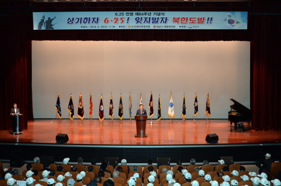 이 시장은 기념사를 통해 “순국선열과 호국영령의 숭고한 희생으로 우리는 자유와 평화를 누리고 있다. 6.25전쟁이 발발한지 64년이 지났지만 아직도 남과 북이 대치하고 있고, 북한의 무력 도발은 계속되고 있다.”고 말했다.