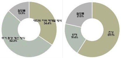 먼저, 지역 재개발이나 도시정비사업에 대해서는 절대 다수가 찬성 입장을 보였다.