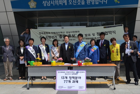 성남시민회의는 13개 정책분야 77개 과제를 선정하여 '좋은 후보'와 협약식을 갖고 이후 당선된 후보들의 공략 이행과 감시를 지속적으로 이어나갈 것이라고 밝혔다.