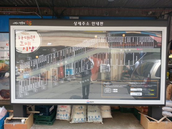 점포별 호수를 표기한 개별안내판과 3m×1.5m 규모 대형 LED 상세주소 종합안내판을 시장 양쪽 입구에 설치했다.
