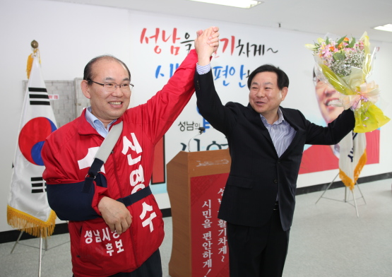 한편, 신영수 새누리당 성남시장 후보는 지난 17일 모란 선거대책위원회 사무실에서 도ㆍ시의원 후보자와 간담회를 갖고 "지난 4년간 야합의 정치로 성남의 자존심이 많이 구겨졌다"면서 "정의 사회를 구현하겠다"며 필승을 다짐했다.