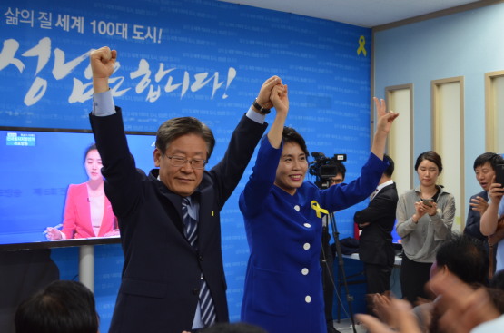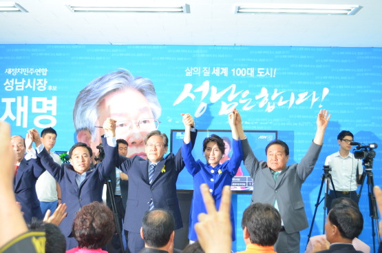 이재명 성남시장이 성남 전역에서 큰 지지를 받으며 재선에 성공했다.