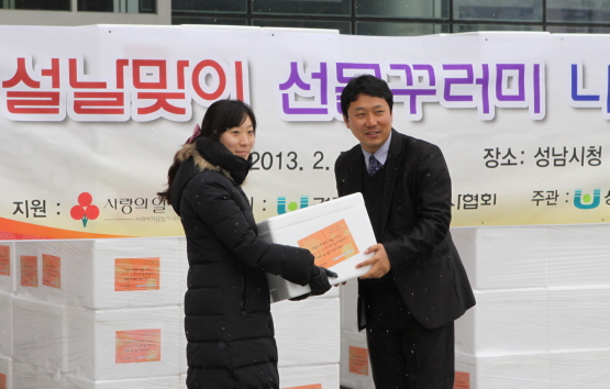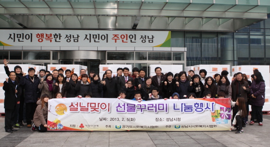 성남시사회복지사협회(회장 진석범)에서는 ‘설날 맞이 선물꾸러미 나눔행사’를 2013년 2월 5일(화)과 6일(수) 15시에 성남시청 광장에서 진행하였다.