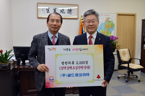 국내외 아웃도어 전문 생산업체인 ㈜골드윈코리아(대표 성기학)가 28일 성남시에 기능성 방한의류 2,000점을 기증했다.