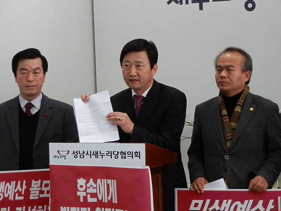 이 시장의 기자회견 후 오후2시 성남시의회새누리당협의회도 당대표실에서 기자회견을 갖고 이재명 시장이 SNS에 박근혜 당선자에게 새누리당 시의원들을 출당징계 요구와 관련하여 "언론플레이로 100만 시민을 속이는 것도 모자라 일국의 대통령당선자를 욕보이고 희롱하고 있다"며 강하게 반박했다.