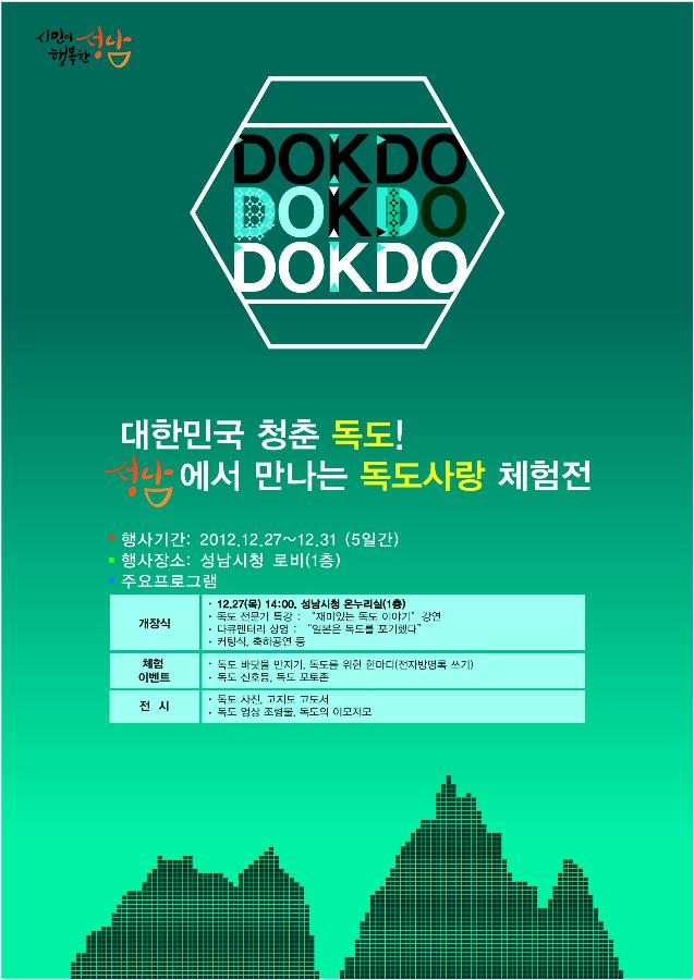 성남시는 오는 12월 27일부터 31일까지 시청 로비에서 ‘성남에서 만나는 독도사랑 체험전’ 을 연다.
