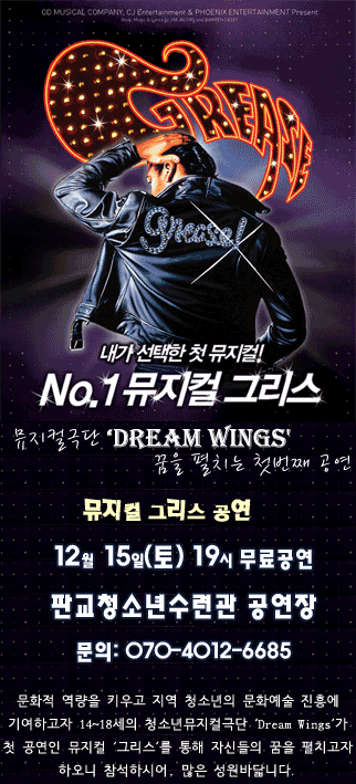 청소년뮤지컬극단 'Dream Wings'첫 공연 페이지 정보 작성자 작성일 12-12-14 10:29 본문 김영철 chul520@hanmail.net 목록 이전글코메디 서커스 12.12.14 다음글송년자선음악회 12.12.14