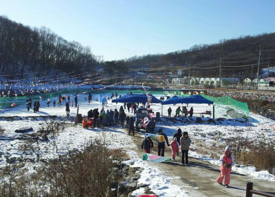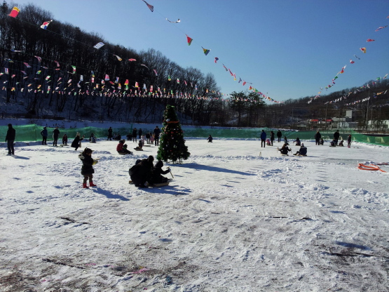 성남시 중원구 도촌동 주민들이 여수천 저류지(도촌동 섬말공원 옆)에 만든 얼음썰매장이 인기리에 운영 중이다.