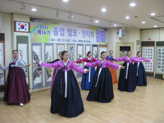 이번 제17기는 가야금반을 비롯, 9개 강좌 16개반에 200여명이 입학하여 운영됐으며, 1부 수료식에서는 수료증 전달, 표창장 수여, 2부 졸업작품발표회는 가야금반 ‘가야금 산조’, 한중 문화반 ‘추몽인’, 한국무용반 ‘소고춤’, ‘입 춤’, 풍물반 ‘웃다리 사물놀이’, ‘삼도 사물’, 판소리반 ‘새타령’, 영미 문화반 ‘I just fall in love again', ’It’s so easy’ 발표와, 한문 서예반, 문인화반, 한글 서예반 에서는 58점의 작품을 전시 한다.
