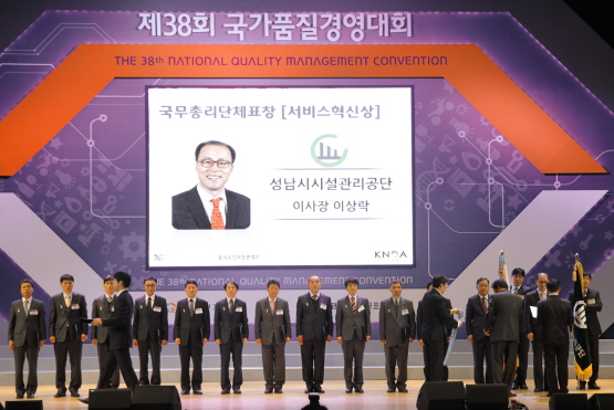 성남시시설관리공단(이사장 이상락)은 지난 21일 서울 코엑스에서 개최된‘2012년 제38회 국가품질경영대회’에서 서비스혁신부문 국무총리상을 수상했다.