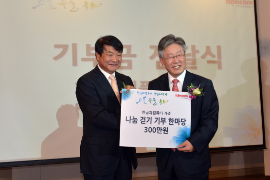 한글과 컴퓨터는 창립 22주년을 기념하여 직원들이 함께 참여한 '나눔 걷기 기부행사' 후원금을 이재명 시장에게 전달했으며, 이 시장은 따뜻한 마음이 담기 후원금은 소년소녀 가장 등 도움이 필요한 곳에 전달하겠다고 말했다.