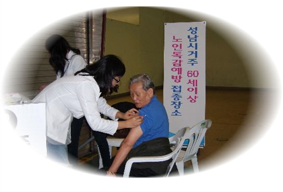 성남시 3개구 보건소는 접종대기 시간을 줄이고 집 가까운 곳에서 노인들이 접종을 받을 수 있도록 매년 구·동별 순회접종을 하고 있다.