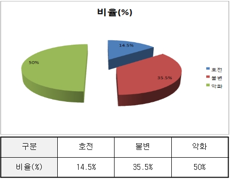 설문에 응답한 회사 중 생산가 동율이 불변이거나 하락이라고 답한 업체가 71.7%로 나타났다. 설비투자에 대해서도 78.7%가 불변이거나 하락이라고 응답함 으로서 기업들이 신규 투자를 주저하거나 중단한 것으로 나타 나 최근 경기 침체가 투자 심리 위축으로 이어지고 있는 것으로 조사되었다.