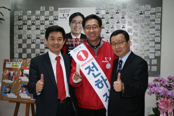 4.11 총선이 닷새 앞으로 다가온 가운데, 분당을 전하진 후보 선거사무소에 새누리당 조현정 비대위원을 비롯해 장흥순 벤처기업협회장, 배희숙 여성벤처기업협회장, 최휘영 전NHN 대표이사, 오형근․이금용 회장 등 전․현직 벤처인들이 전 후보와 선거사무원들을 응원하기 위해 깜짝 방문했다.