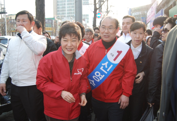 29일 오후4시 40분경 새누리당 중앙선대위원장인 박근혜 위원장이 성남시 수정구 태평동에 위치한 성남중앙시장에 새누리당 성남 수정구 후보인 신영수후보 지원유세를 위해 방문하여, 성남중앙시장을 돌며 시장상인 분들, 시민분들과 인사를 나누며 신영수 후보님의 지지를 부탁하였다.