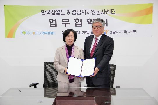 한국잡월드(이사장 장의성)와 성남시자원봉사센터(센터장 윤숙자)는 2월 28일(화) 오전 10시 한국잡월드 회의실에서 잡월드 내 자원봉사단 운영과 관련한 업무협약을 체결했다.