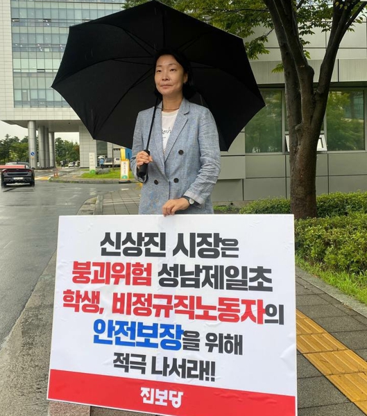 <성남시에 '제일초 안전보장' 촉구하는 진보당 성남시협의회 최성은 위원장>