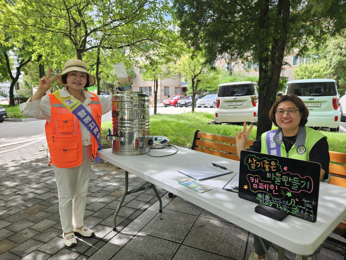 성남시 분당구에 위치한 청솔마을6단지 주민조직 '이웃따봉(대표 황정순)'은 지난 7월 25일(목) 청솔마을6단지관리사무소(소장 현양조), 청솔마을임차인대표회(회장 박태규), 청솔종합사회복지관(관장 김재일)과 함께 청솔마을6단지 지역주민을 대상으로 '살기좋은 마을만들기' 캠페인을 펼쳤다.