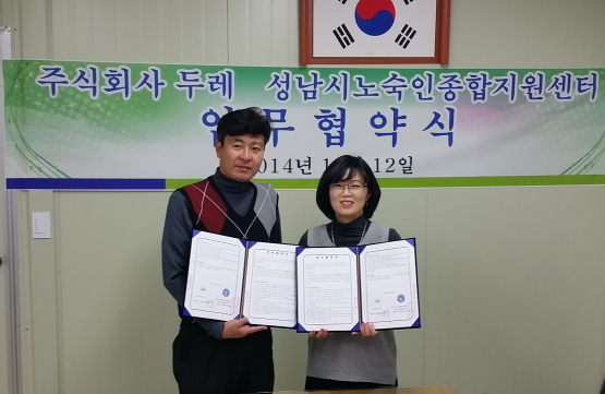 성남시노숙인종합지원센터의 리스타트자활사업단(센터장 장원국)과 사회적기업 주식회사 두레(대표이사 곽태임)는 지난 11월 12일 노숙인의 자활과 자원순환사회 조성에 상호 협력을 위해 폐현수막 분리작업에 관한 업무협약을 체결했다.
