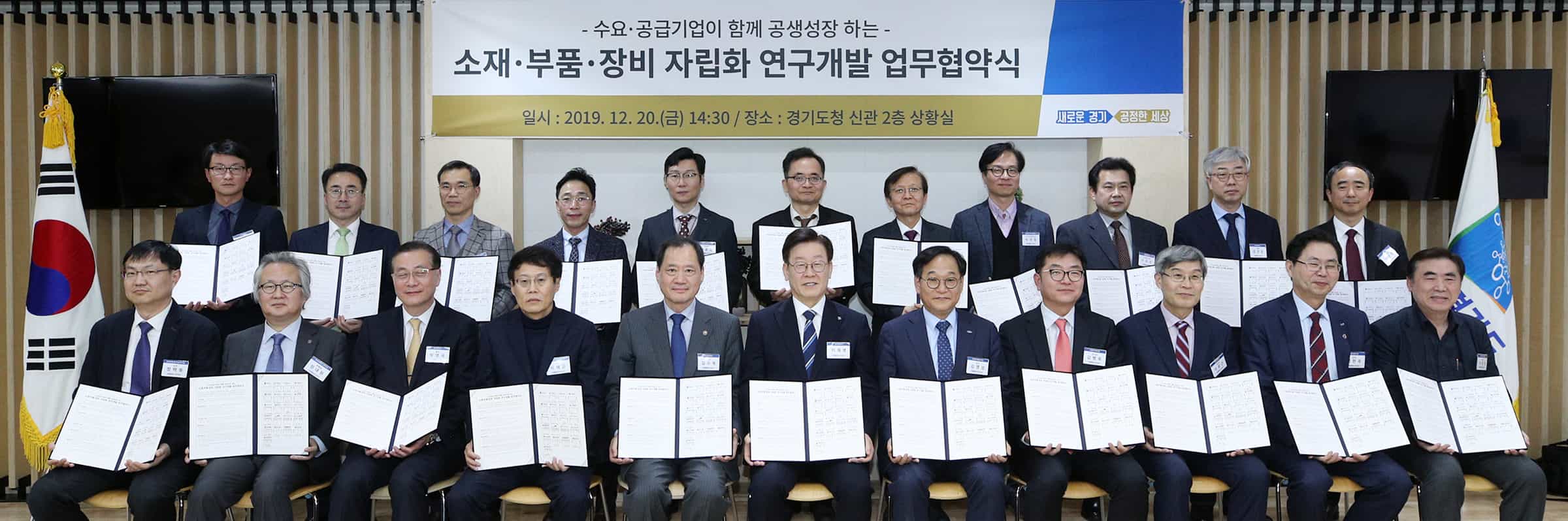 경기도가 차세대융합기술원, 도내 대학, 연구기관, 협회, 기업 등 20개 기관과 ‘소재․부품․장비 자립화 연구개발 업무협약’을 체결하고, 핵심소재‧부품‧장비의 국산화를 통한 ‘기술독립’ 실현에 나선다.