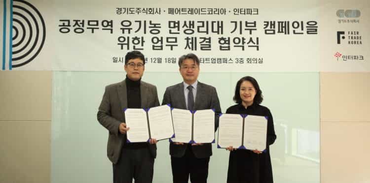 경기도주식회사(대표 이석훈)은 18일 오후 판교 테크노밸리 스타트업캠퍼스에서 페어트레이드코리아와 인터파크와 함께 공정무역 유기농 면생리대 출시와 기부캠페인을 통한 사회인식확산 캠페인을 추진을 약속하는 협약을 체결했다고 밝혔다.