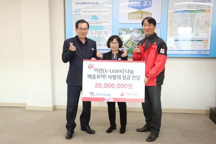 경기도인재개발원은 공무원과 공공기관 직원들이 1년 동안 이러닝 학습을 통해 적립한 학습 마일리지 2,000만원을 도내 지역사회 나눔 실천의 일환으로 기부했다고 18일 밝혔다.