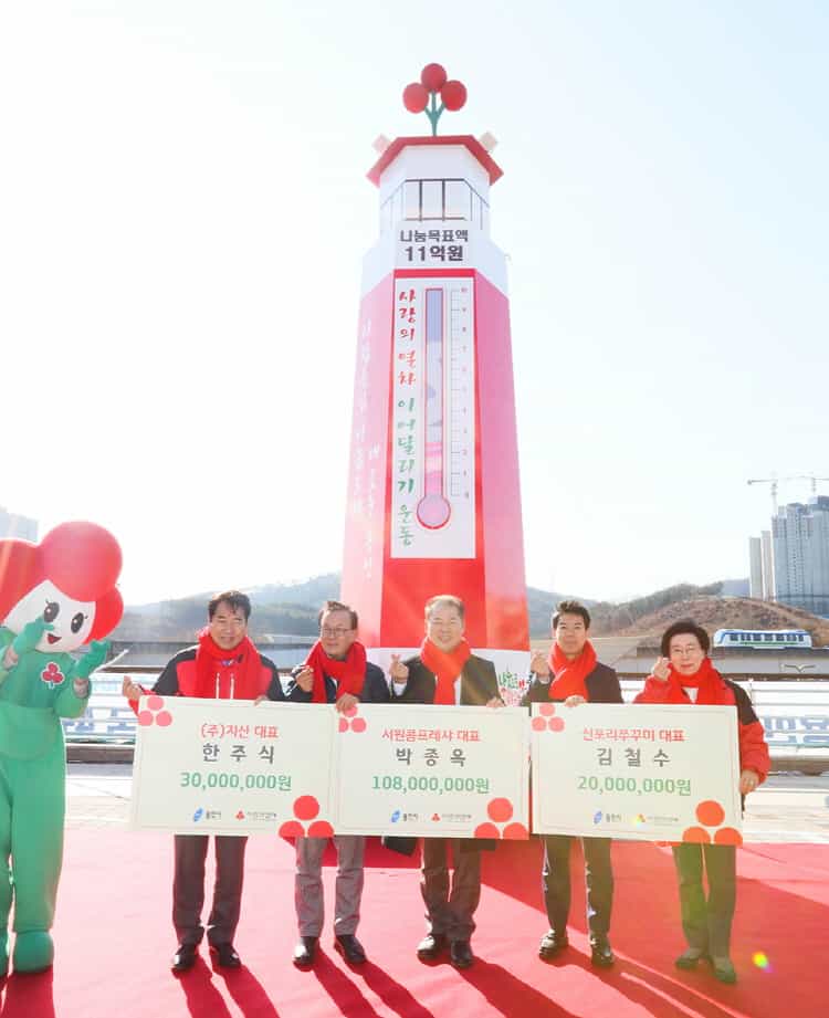 백 시장은 “따뜻한 이웃 사랑의 온기를 확인할 수 있는 사랑의 온도탑이 설치돼 기쁘다”며 “작은 정성이 모여 큰 사랑이 되도록 많은 시민들이 적극 동참해주기 바란다”고 말했다.