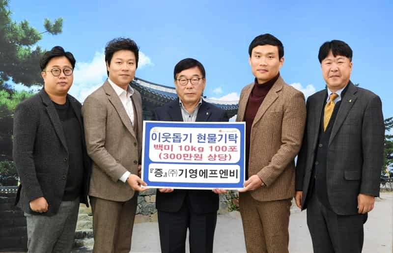 또한, 이날 ㈜현대화학 이봉균 대표는 단열벽지 600롤(720만원 상당)을, ㈜기영에프엔비 이기영 대표는 백미 100포(10㎏·300만원 상당)를 기탁했다.