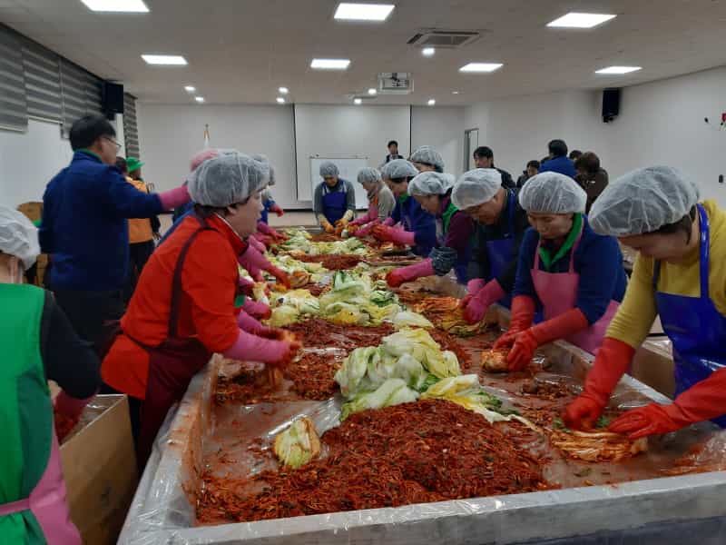 새마을에서 직접 재배한 배추와 무로 담근 김장 700 포기는 100 박스에 담겨 쌀 50 포대와 함께 독거노인 및 소외계층에 전달되었다.