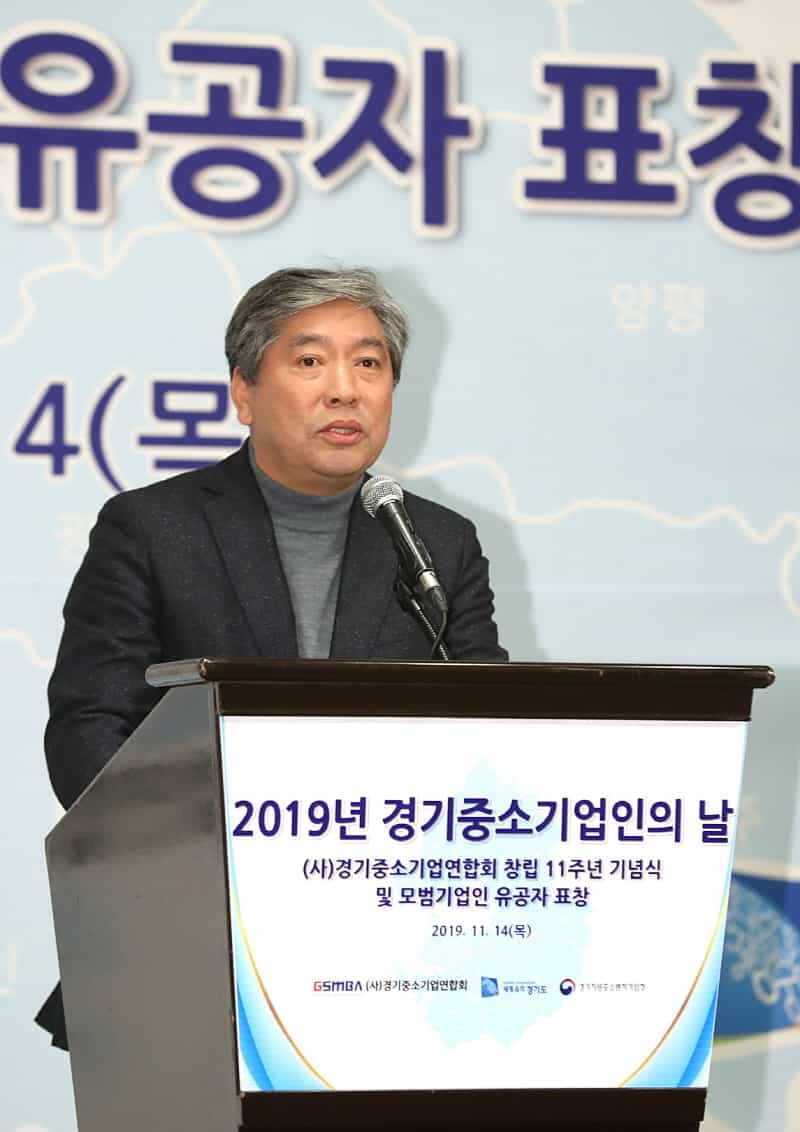 송한준 경기도의회 의장(더민주, 안산1)이 14일 라마다프라자 수원호텔에서 열린 ‘2019년 경기중소기업인의 날’ 행사에 참석해 중소기업을 지원하는 데 최선을 다하겠다고 밝혔다.