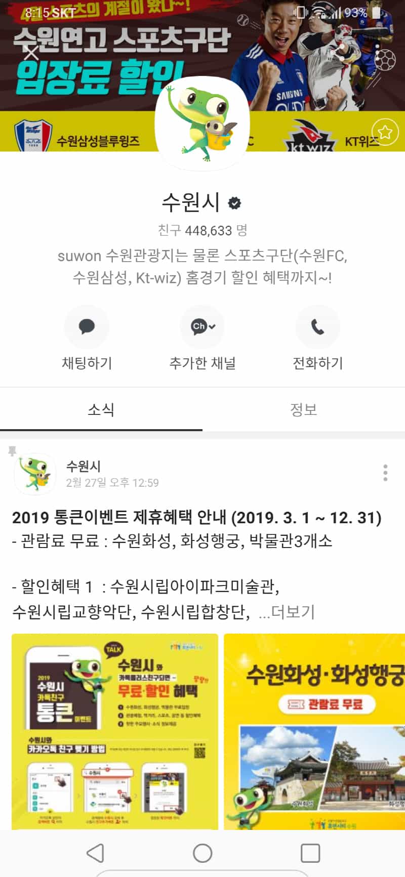 2016년 시작한 ‘카톡친구 통큰이벤트’가 카톡친구 수 증가에 결정적인 영향을 끼쳤다. 통큰 이벤트는 수원시와 카톡 친구를 맺으면 수원시 주요 관광지와 체험 시설을 무료·할인 가격으로 이용할 수 있는 이벤트다.