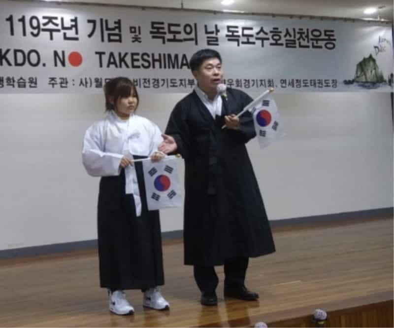 25일 ‘독도의 날’을 맞아 독도향우회 경기지회장을 맡고 있는 경기도의회 정대운 기획재정위원장(더민주, 광명2)은 광명시 독도수호실천운동의 ‘Yes 독도, No 다케시마’ 기념행사에 참여하였다. 이번 ‘독도의 날’은 독도 영유권을 선포한 대한제국 칙령 제41호 반포 119주년을 맞는 해로 더욱 뜻깊다.